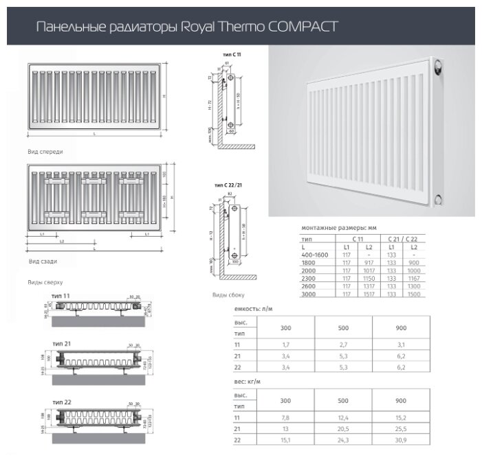 Отзывы на ROYAL THERMO Радиатор панельный COMPACT C11-300-600 RAL9016 НС-1189438