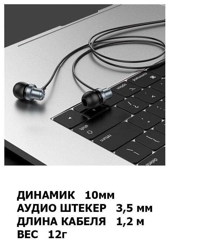 10 цен на NEW Наушники вакуумные AUX разъём с МК без рег.громкости длина 1.2м Borofone BM70 Metal Grey