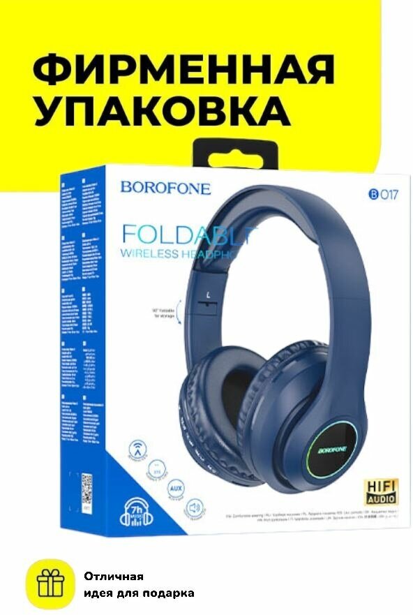 Беспроводные / Полноразмерные наушники / Borofone B017 / Синие / Bluetooth 5.0 / Складные