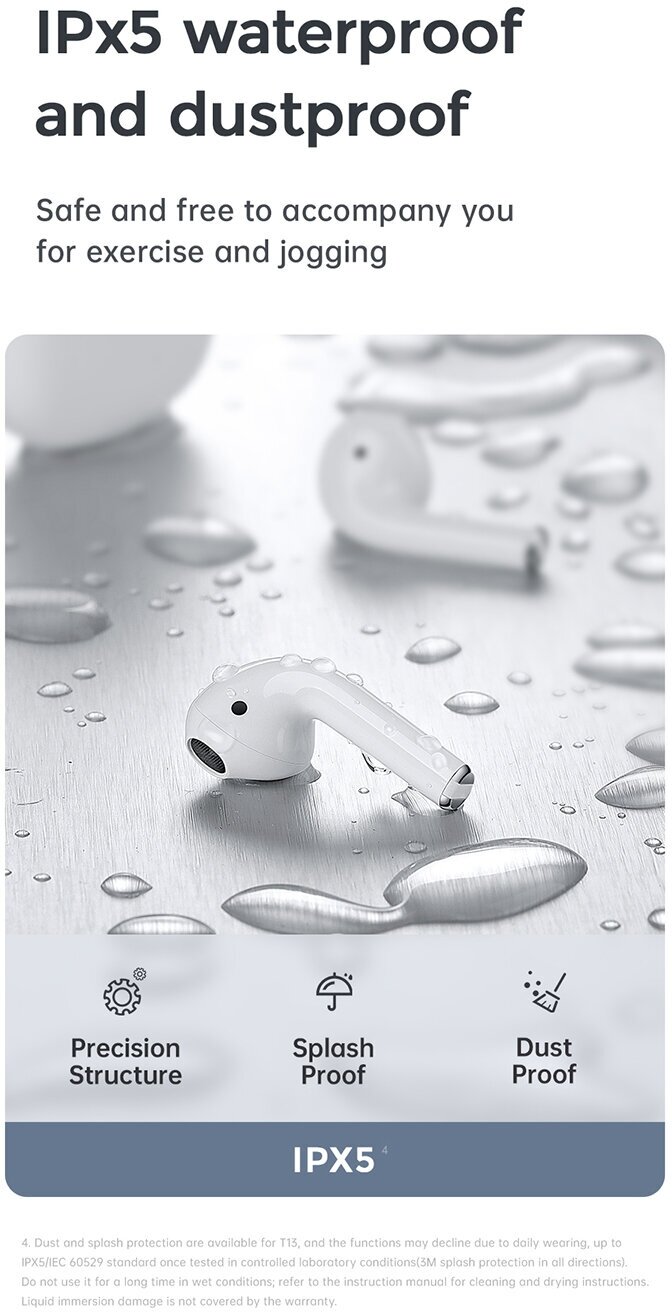 Отзывы на Беспроводные наушники JOYROOM JR-T13 TWS, Bluetooth, 400 мАч, белый, 5мВт, шумоподавление
