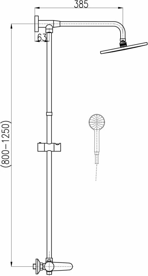 | Дополнительная информация | высота стойки для душа: 1250 мм; диаметр верхнего душа: 230 мм |