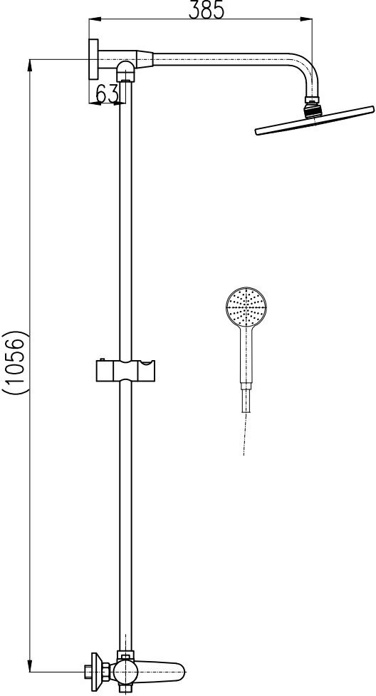 | Дополнительная информация | высота стойки для душа: 1056 мм; диаметр верхнего душа: 230 мм |