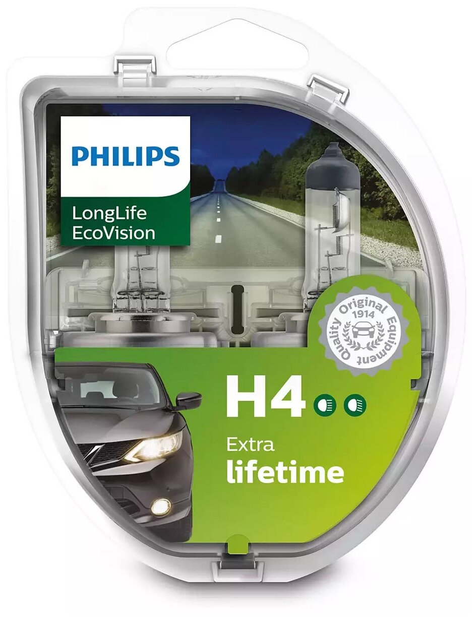 Лампа автомобильная галогенная Philips LongLife EcoVision 12342LLECOS2 H4 60/55W 2 шт. информация: