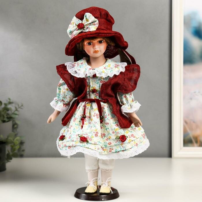 Кукла коллекционная керамика "Вероника в цветочном платье и красном пальто" 40 см(В наборе1шт.) 2 077 ₽