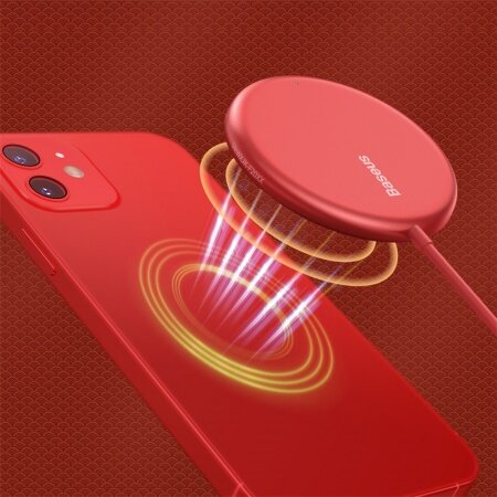 Беспроводное зарядное устройство Baseus Simple Mini Magnetic Wireless Charger магнитное (для iPhone 12 и 13 серии) кабель Type-C 1.5m 15W Red