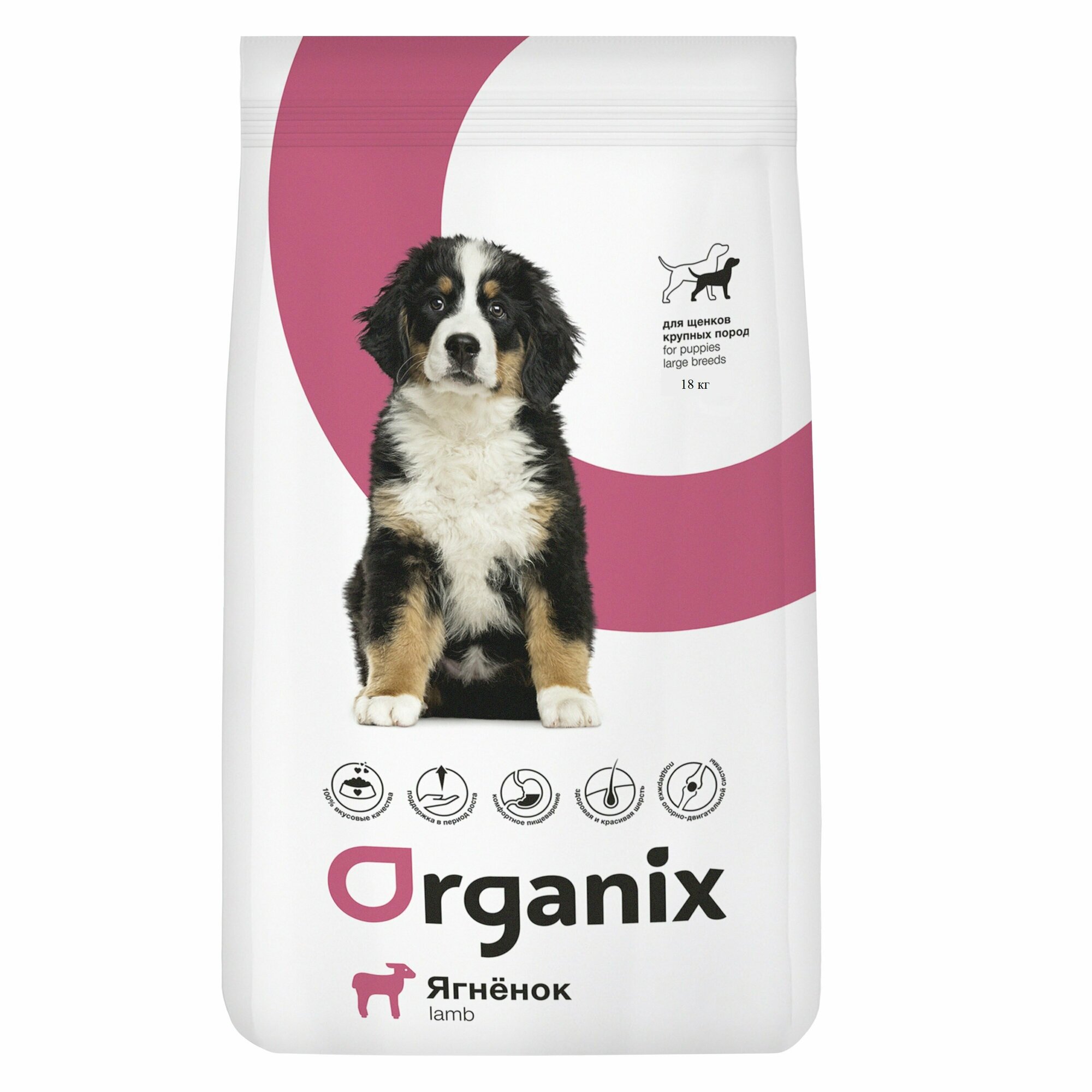 Сухой корм Organix для щенков крупных пород, с ягненком, 18 кг