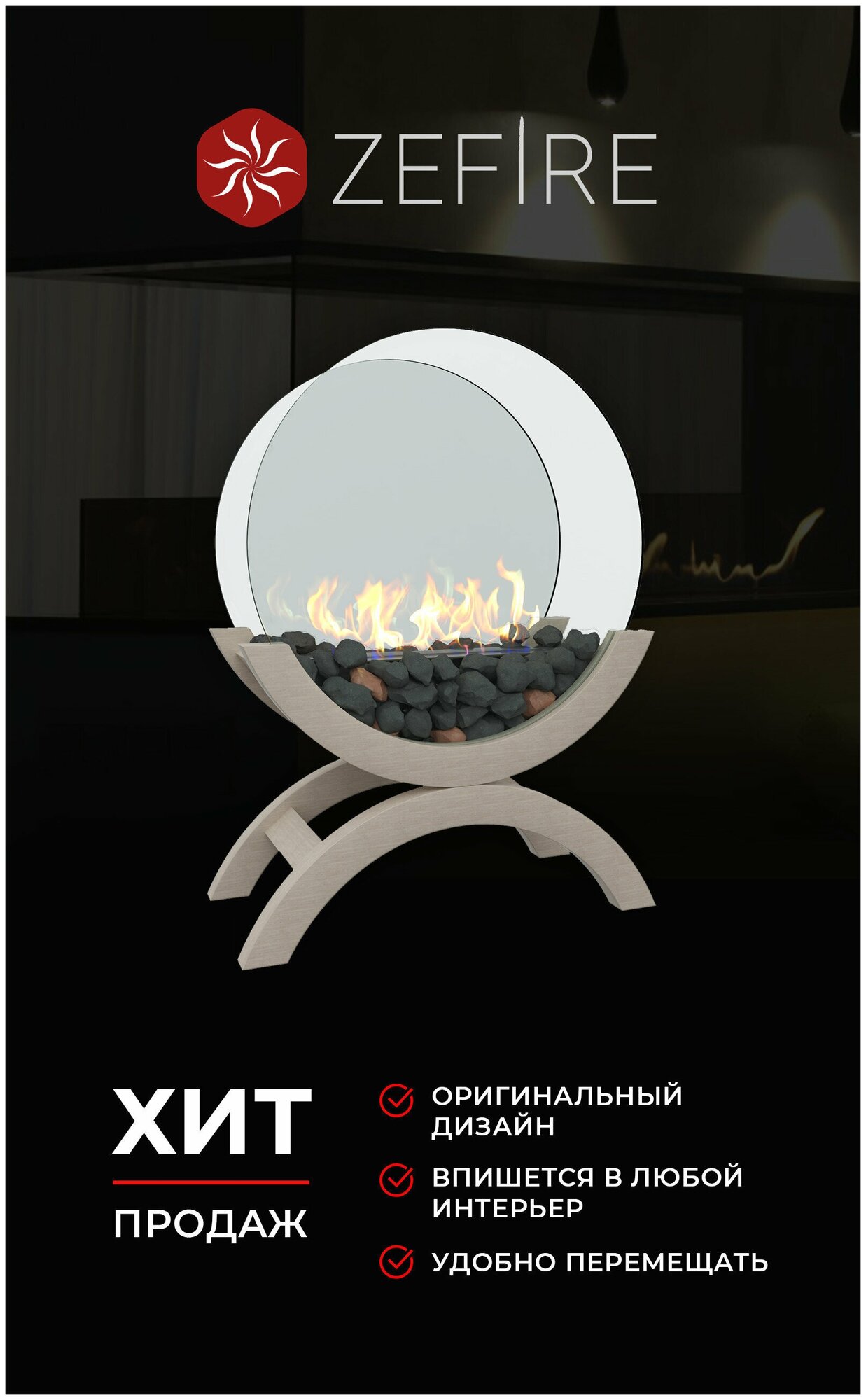 ZeFire Биокамин напольный Iris средний для дома и квартиры