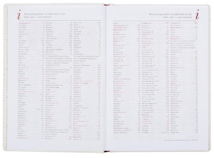| Дополнительная информация | 14 страниц со справочной информацией, 18 страниц - телефонная книга; обложка подходит для тиснения; вес 396 г |