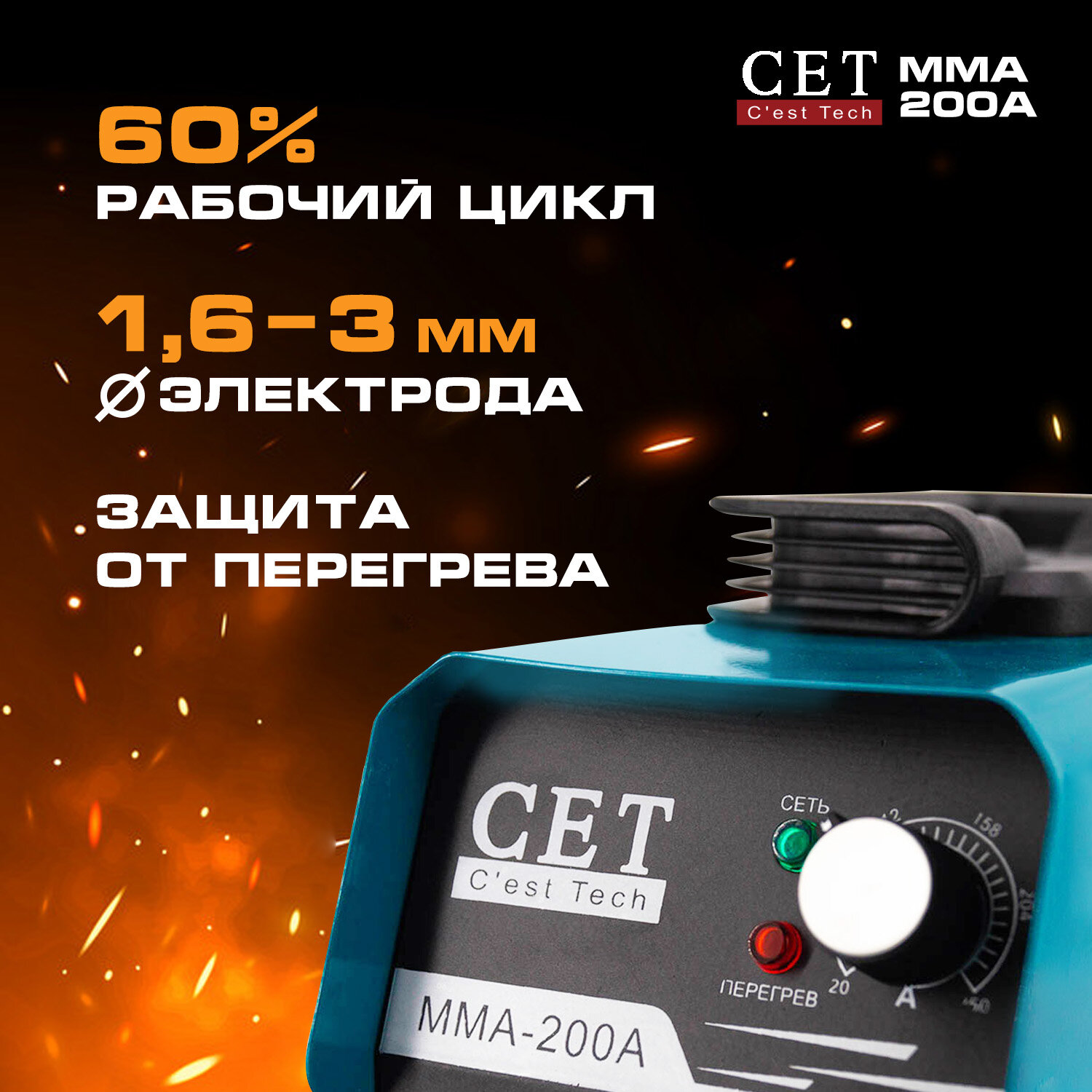 Сварочный аппарат инверторного типа C'est tech CET MMA 200A, MMA 3.1 кг информация: