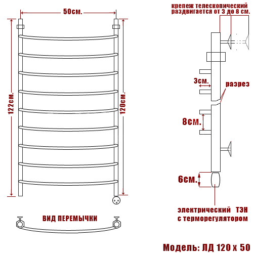 Полотенцесушитель электрический Ника Arc ЛД 120/50-8 Э, правый тэн информация: