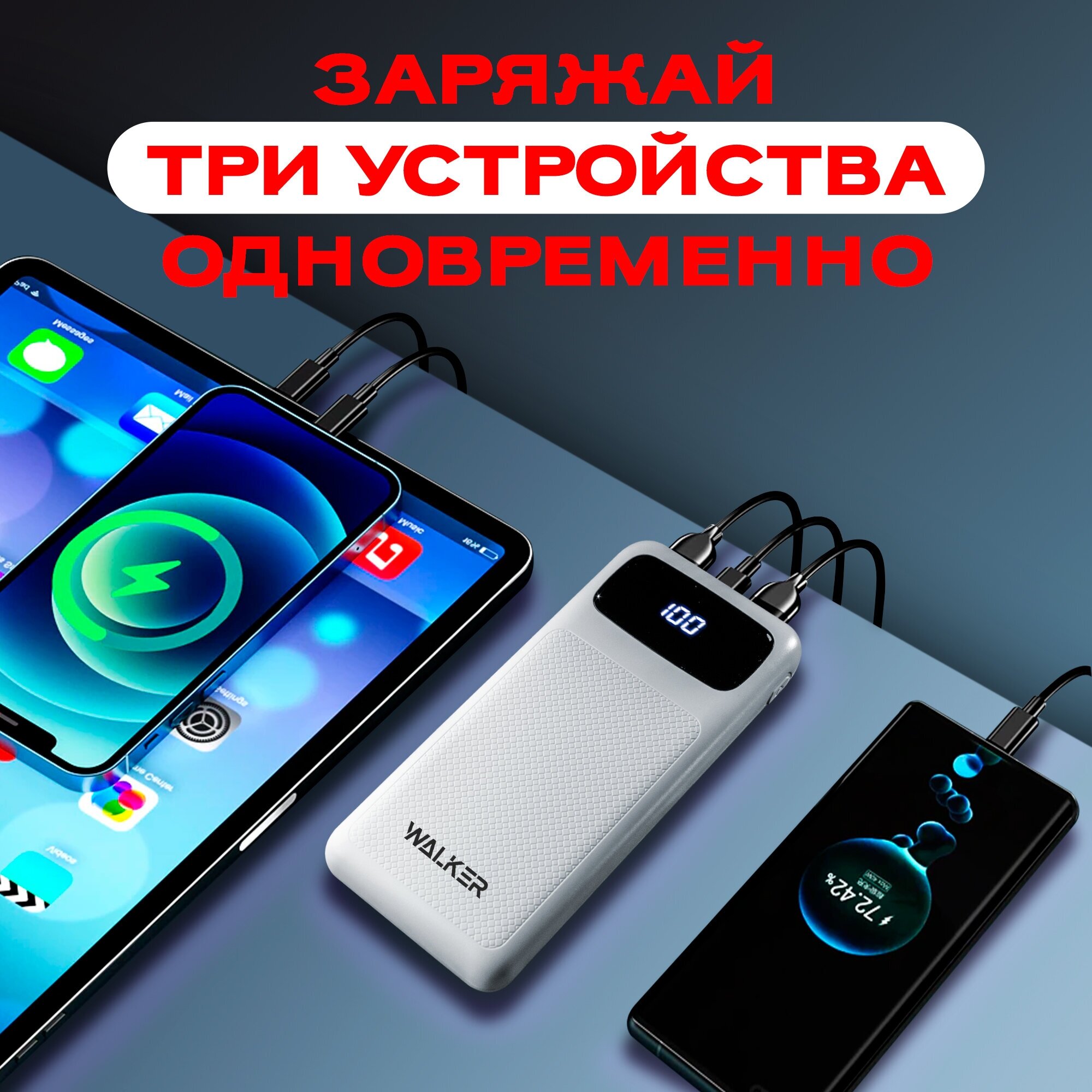Отзывы на Внешний аккумулятор power bank 10000 mAh, WALKER WB-910, портативная зарядка, повербанк для xiaomi, пауэр банк для redmi, пауэрбанк для iphone, белый