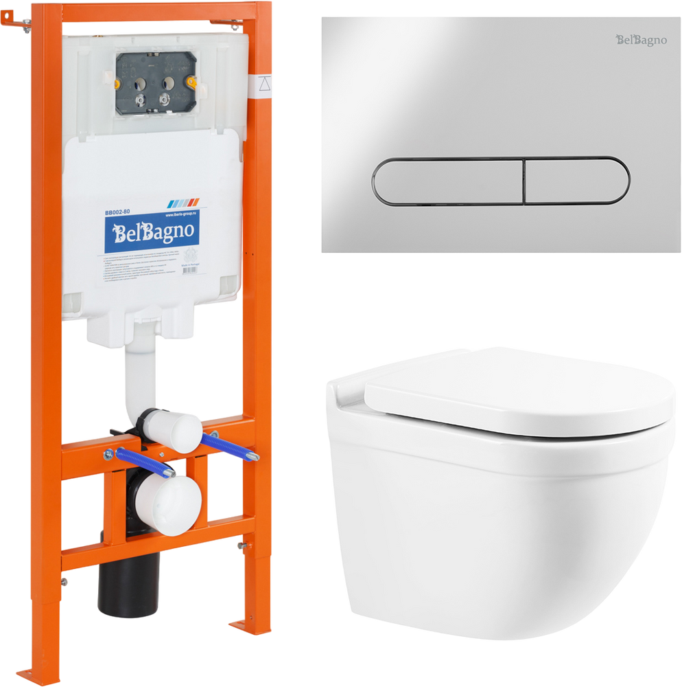 Отзывы на BelBagno Комплект Унитаз подвесной Senso-r BB017CHR крышка BB865SC, безободковый, с микролифтом + Система инсталляции для унитазов BB002-80 с