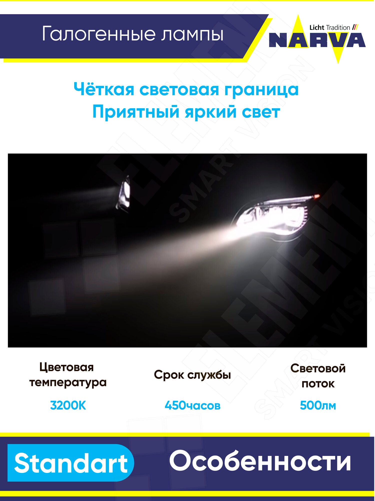 10 цен на Лампа автомобильная галогенная Narva 480393000 H27W/1 12V 27W PGJ13 3000K 1 шт.