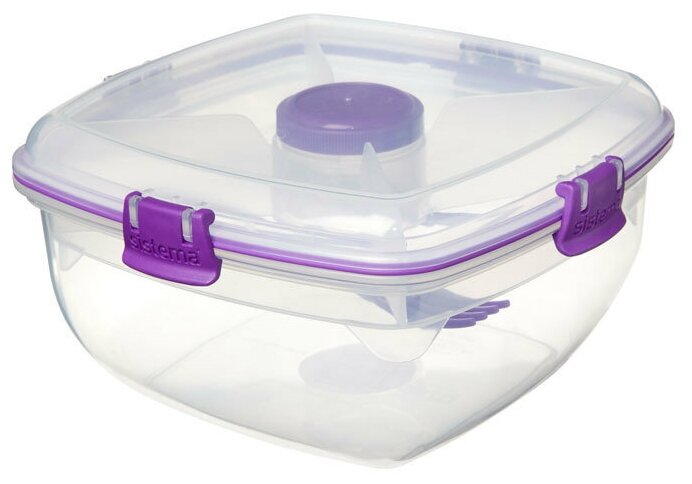 Отзывы на Контейнер SISTEMA TO-GO для салата с разделителями и приборами, 1,63л, синий, 21357