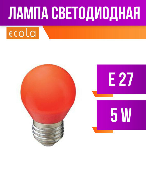Отзывы на Светодиодная LED лампа Ecola globe LED color 5,0W G45 220V E27 Red шар Красный матовая колба 77x45 K7CR50ELB