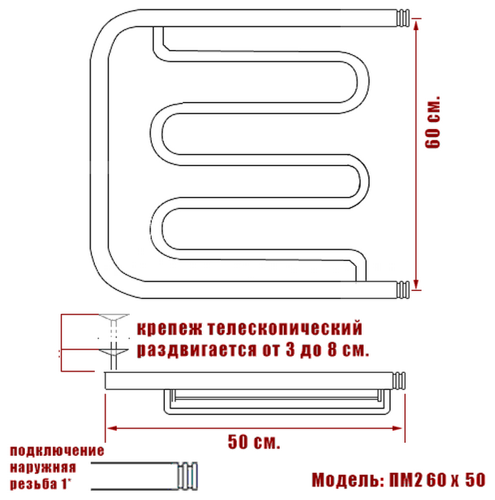 Водяной полотенцесушитель Ника Econ ПМ2 60x50 с полкой Хром информация:
