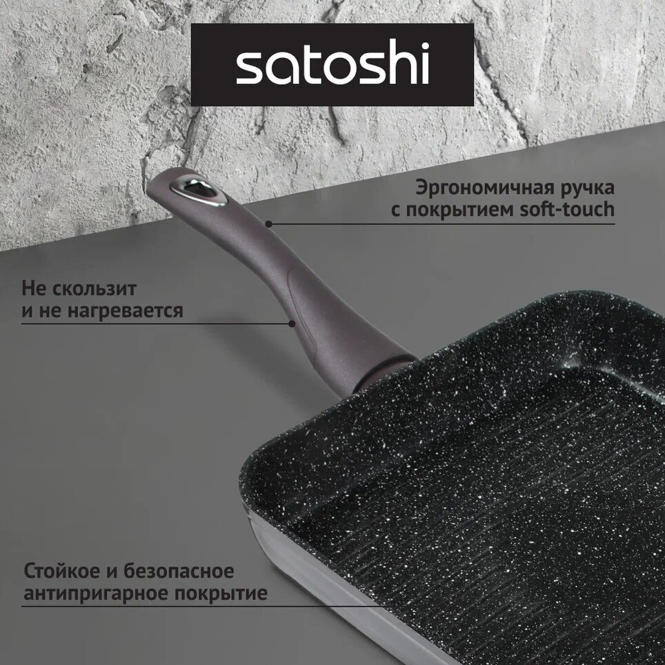 10 цен на SATOSHI Валькур Сковорода-гриль литая 26х26см, антипригарное покрытие мрамор, индукция