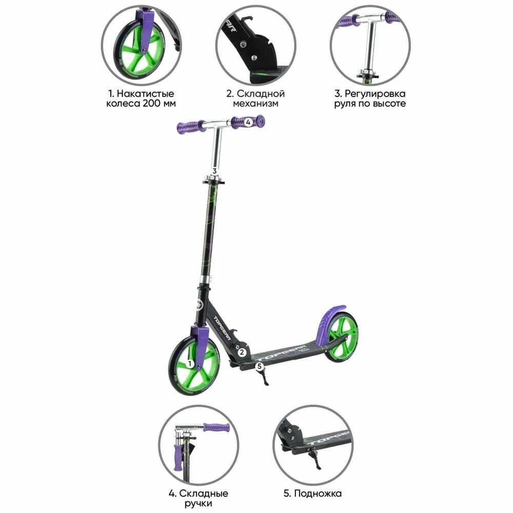 Самокат TOPGEAR Т11452 городской 2-кол. черный/сиреневый (Г’11452) 4 800 ₽