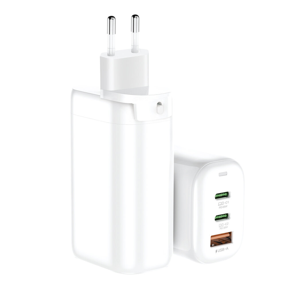10 цен на PERO Сетевое зарядное устройство TC06 GaN, 1xUSB-A QC + 2xPD, 65W, LED-индикатор white (Белый)