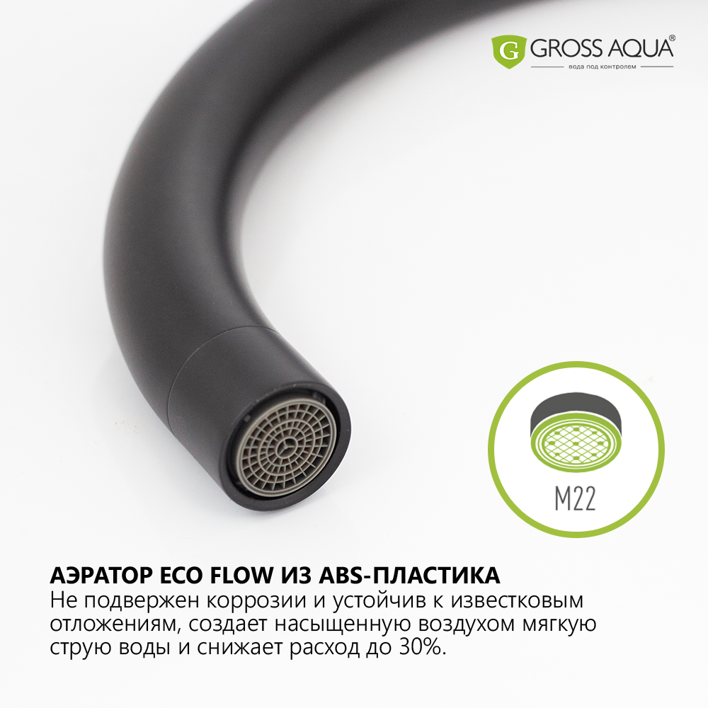 Смеситель для кухни GROSS AQUA Evo matt black 3118297MB-В02 с поворотным изливом