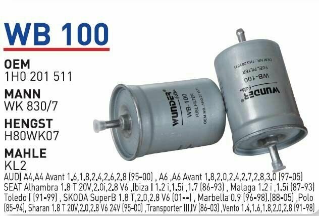 Отзывы на WUNDER-FILTER WB100 Фильтр топливный AD VW BMW MB NISSAN WUNDER FILTER WB100 1шт