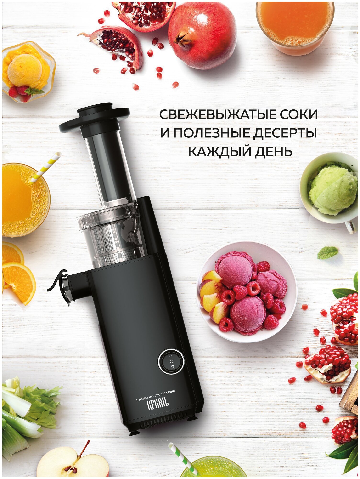GFGRIL Соковыжималка шнековая 2 в 1 GF-J10 с насадкой для приготовления сорбета, суперкомпактная соковыжималка электрическая для цитрусовых 3 990 ₽