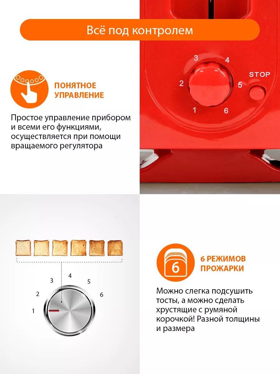 | Дополнительные функции | регулировка степени обжаривания, кнопка отмены, автоматическое поднятие тостов |
