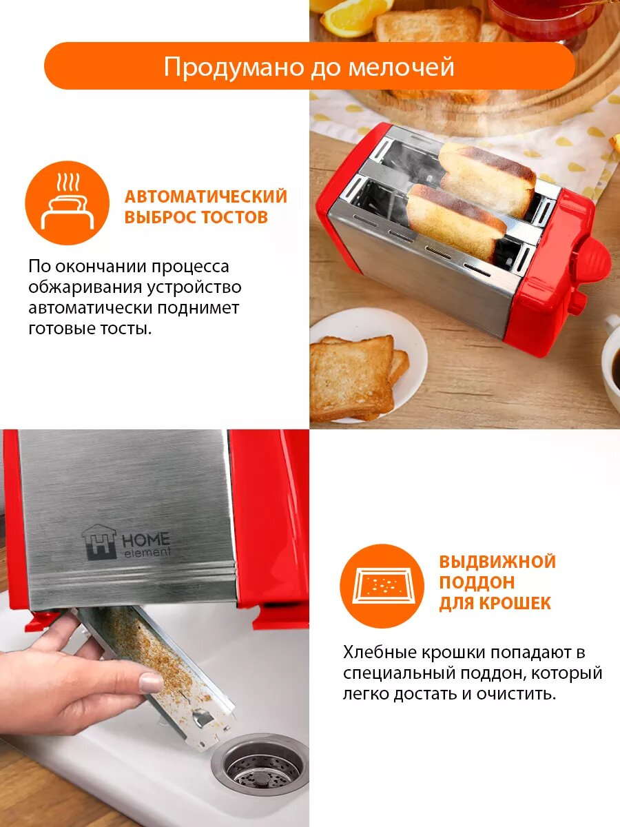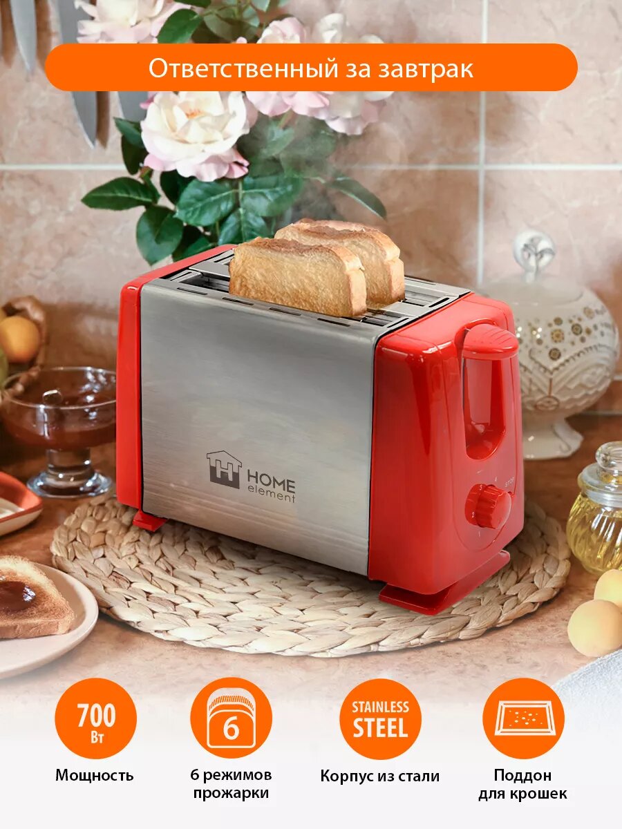 Тостер HOME ELEMENT HE-TS500 красный рубин информация: