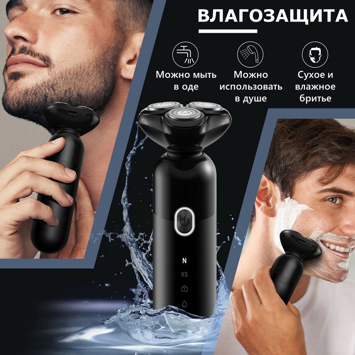 Электробритва мужская Enchen Mocha S, шейвер роторная бритва для мужчин электрическая с плавающими головками для сухого и влажного бритья, черная информация: