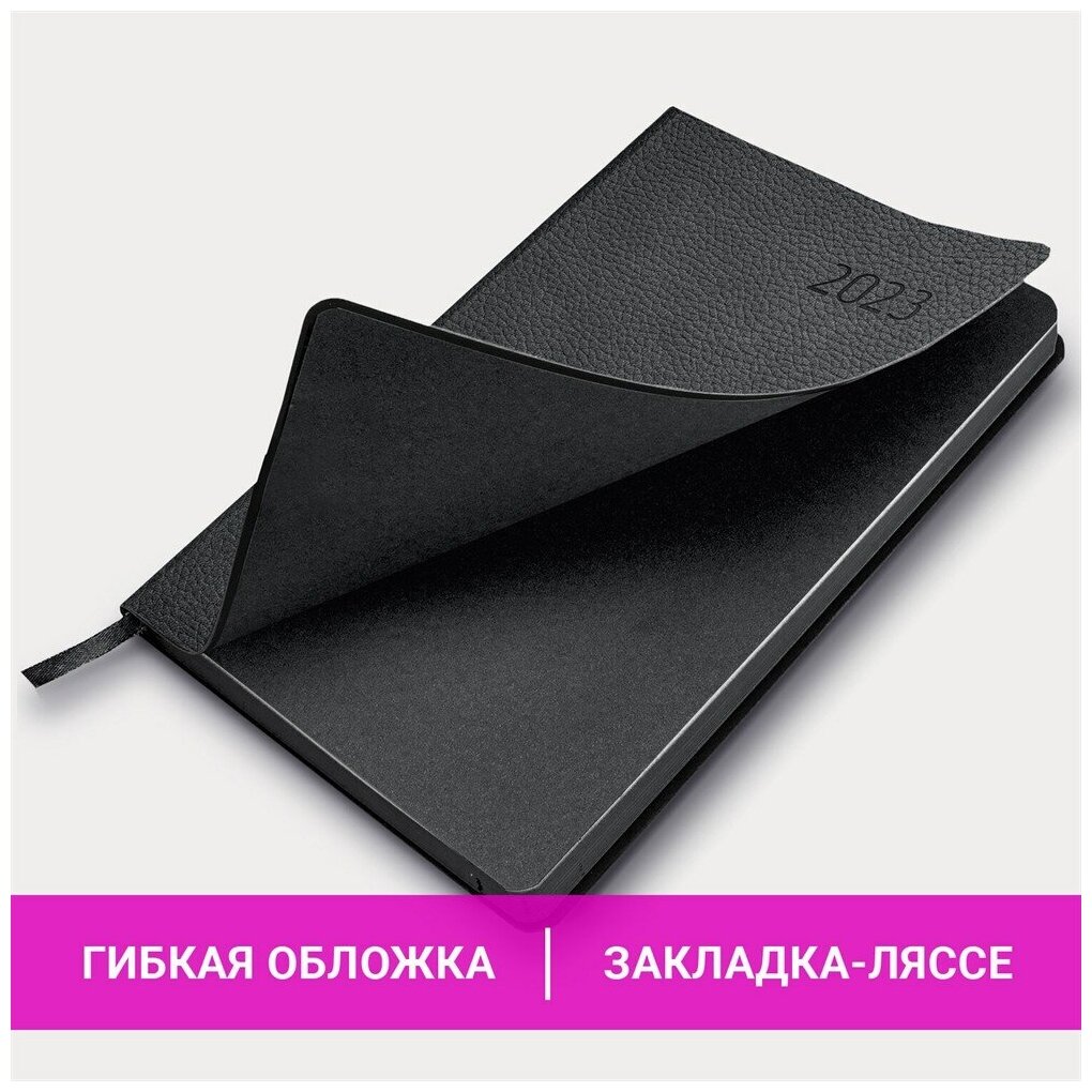 Ежедневник-планер (планинг) / записная книжка / блокнот датированный на 2023 год формата А5 (138x213 мм) Brauberg Stylish, под кожу, черный