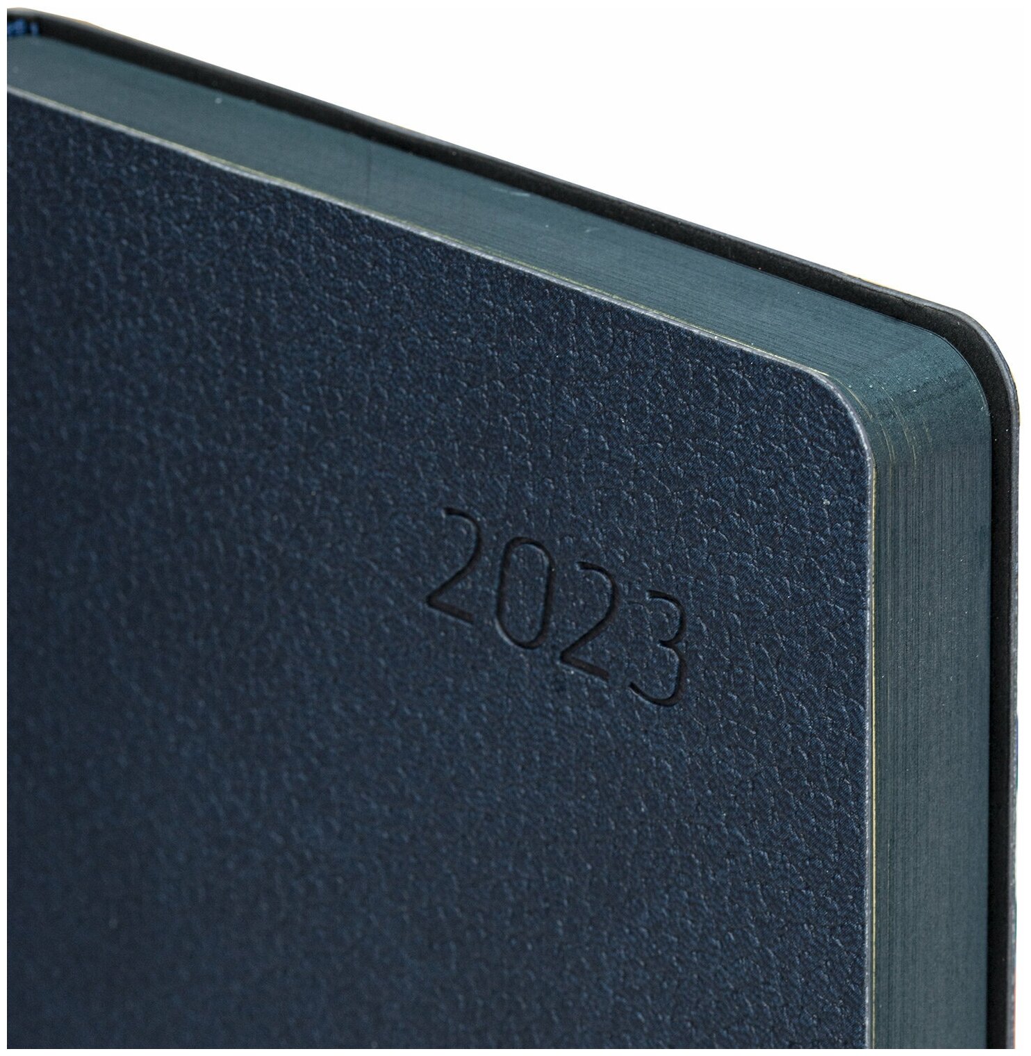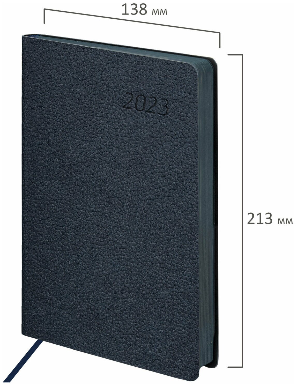 Ежедневник датированный 2023 А5 138x213 мм BRAUBERG "Stylish", под кожу, темно-синий, 114068