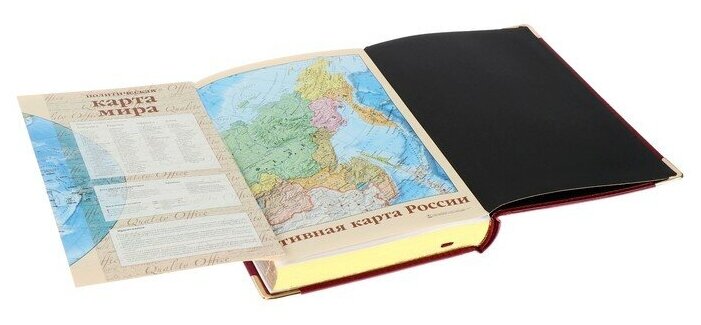 | Особенности | металлические уголки на обложке / справочная информация / ляссе / прошивка по периметру обложки / цветной обрез |