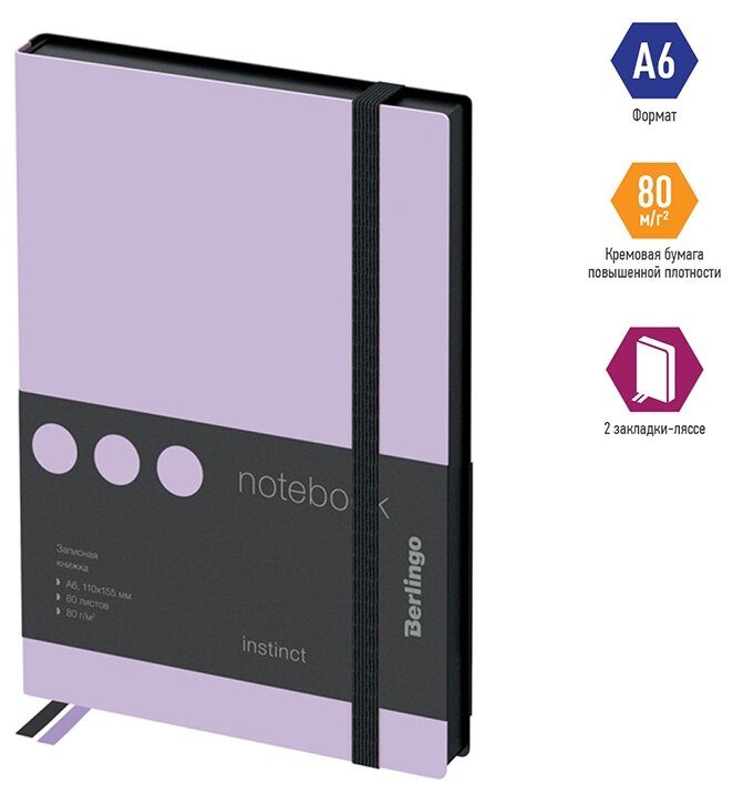 Отзывы на Записная книжка Berlingo А6, 80 листов, кожзам, "Instinct", черный срез, черный-лаванда, с резинкой (NB0_91603)