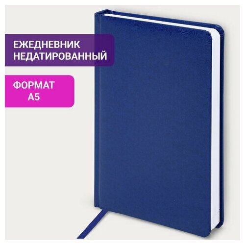 Ежедневник недатированный А5 (138x213мм) BRAUBERG Select, балакрон, 160л, синий, 111664