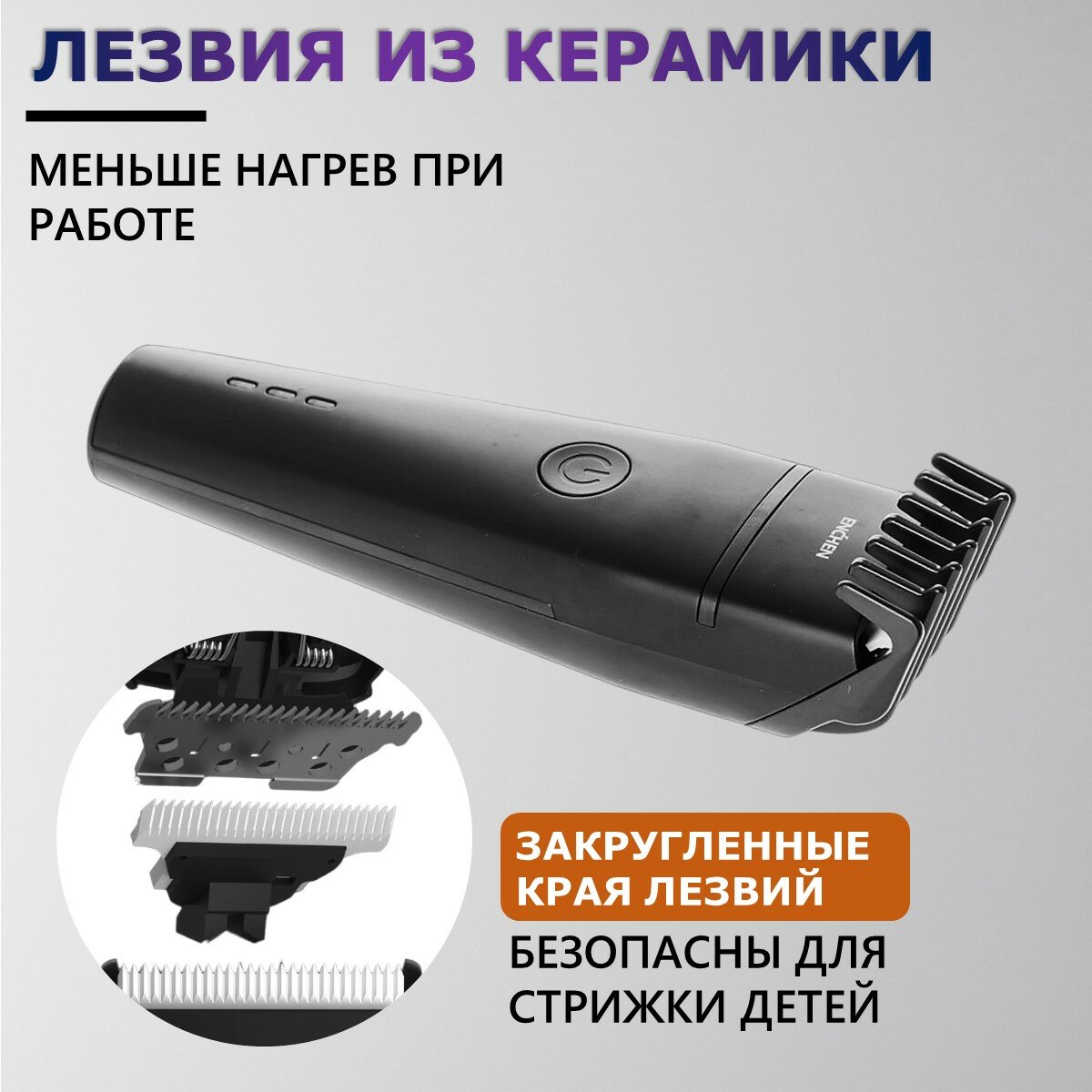Машинка для стрижки Enchen Boost 2 черный [с помощью регулятора, насадок-1 шт, от аккумулятора, керамика]
