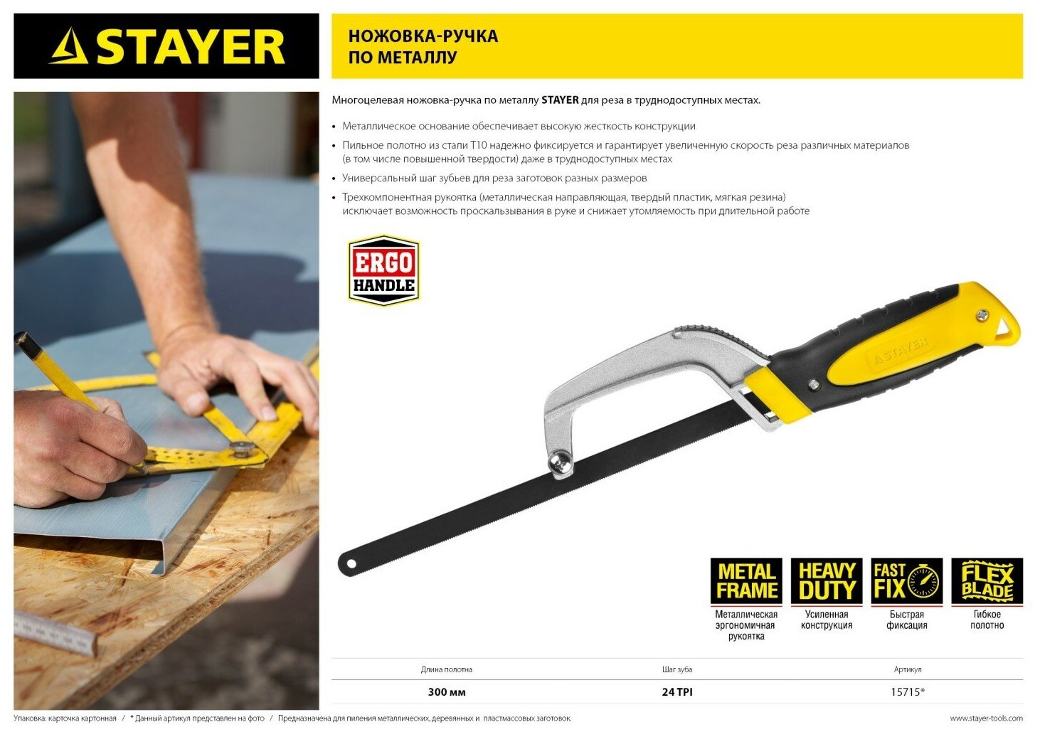 Мы выбрали 10 лучших цен на Ножовка-ручка 300 мм по металлу многоцелевая Stayer 15715. Перед тем как купить Ножовка-ручка 300 мм по металлу многоцелевая Stayer 15715 посмотрите найденные предложения из Яндекс Маркета и других сайтов на основе XML фидов.