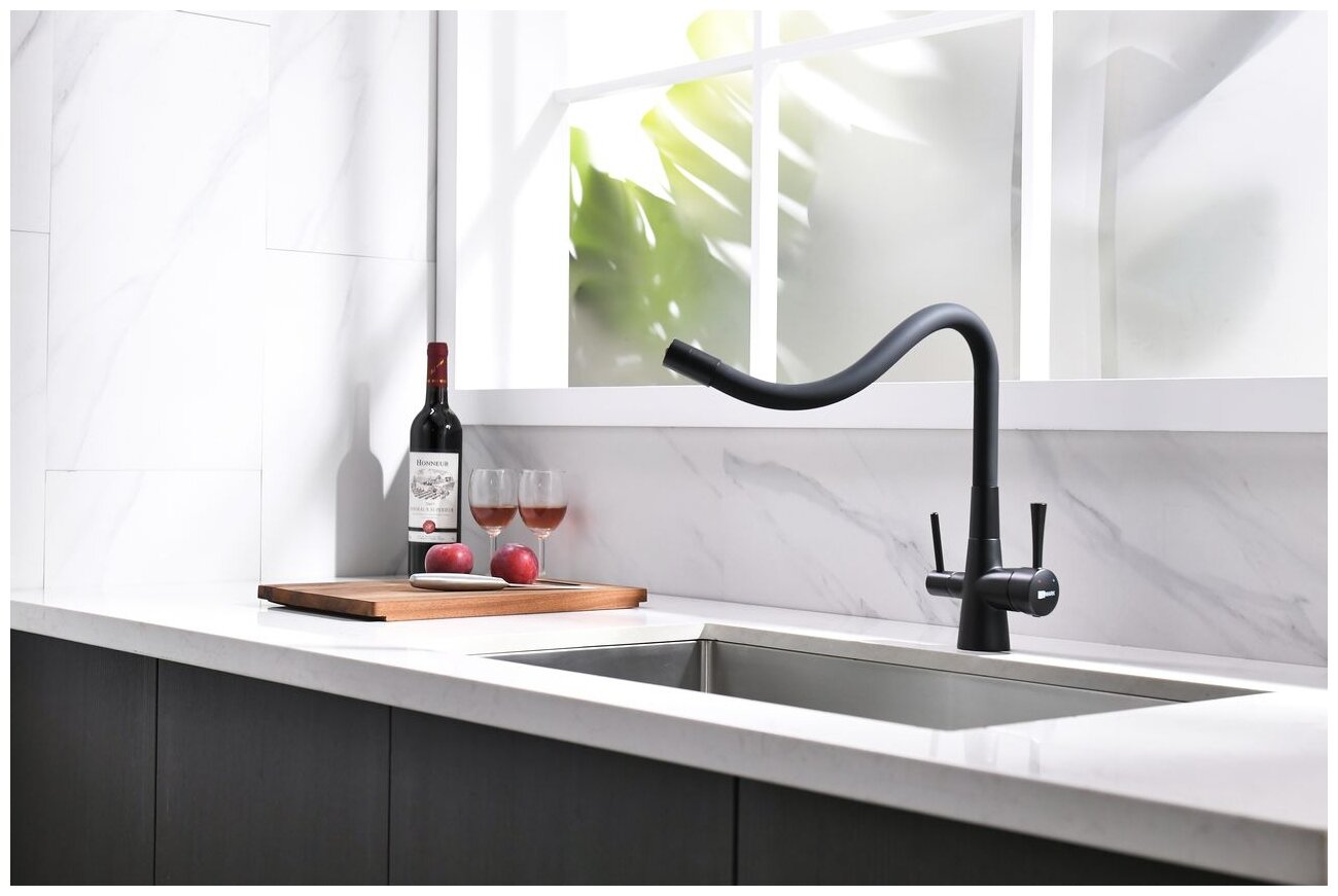 Смеситель Lemark Comfort LM3075B для кухни с гибким изливом и подключением к фильтру с питьевой водо