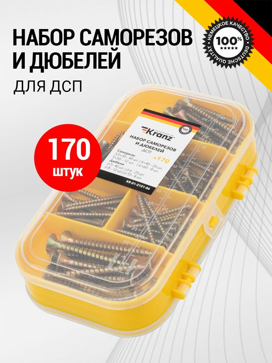 Набор саморезов и дюбелей для ДСП Kranz 170шт KR-01-3101-06