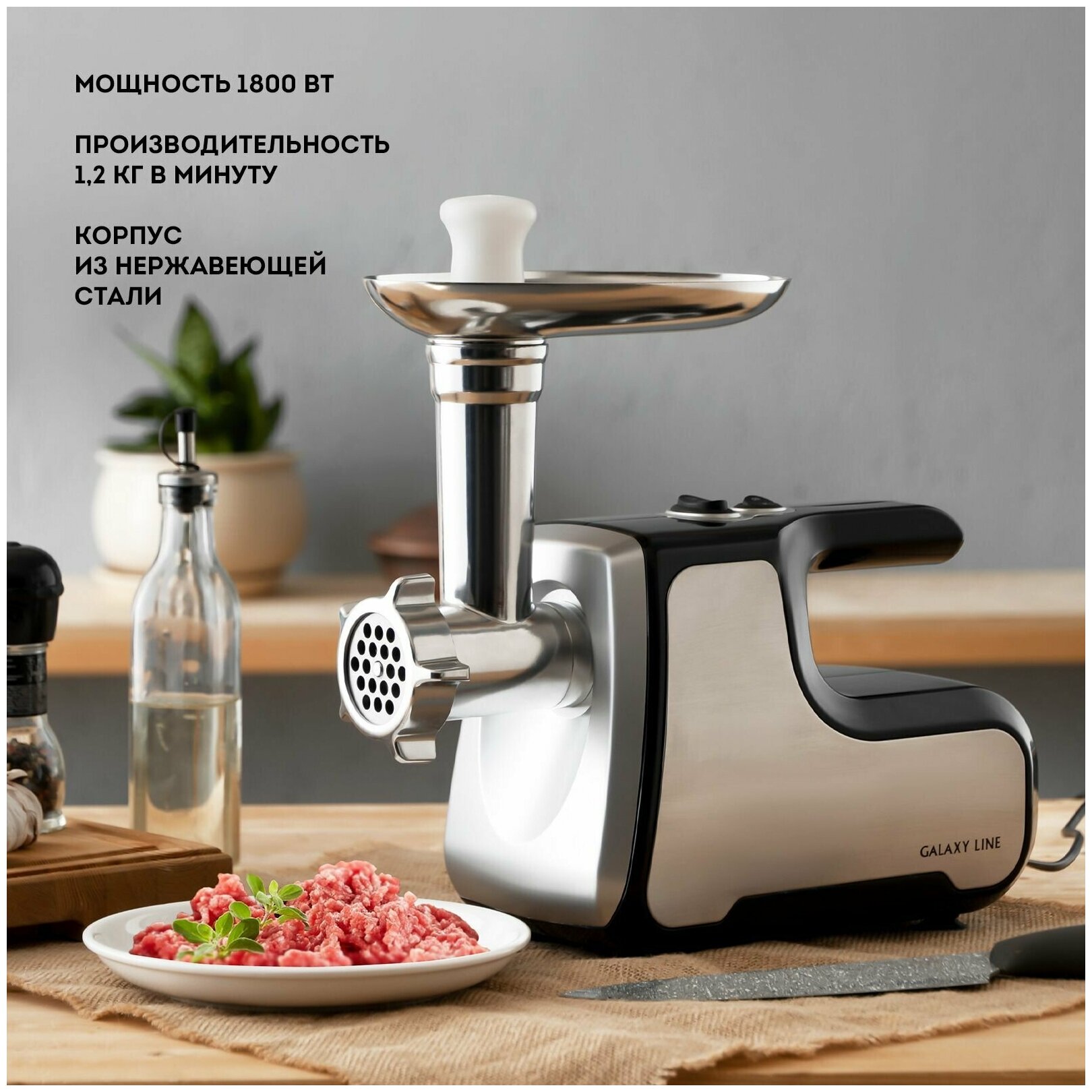 Мясорубка Galaxy Line GL 2417 1800Вт черный/серебристый 6 190 ₽