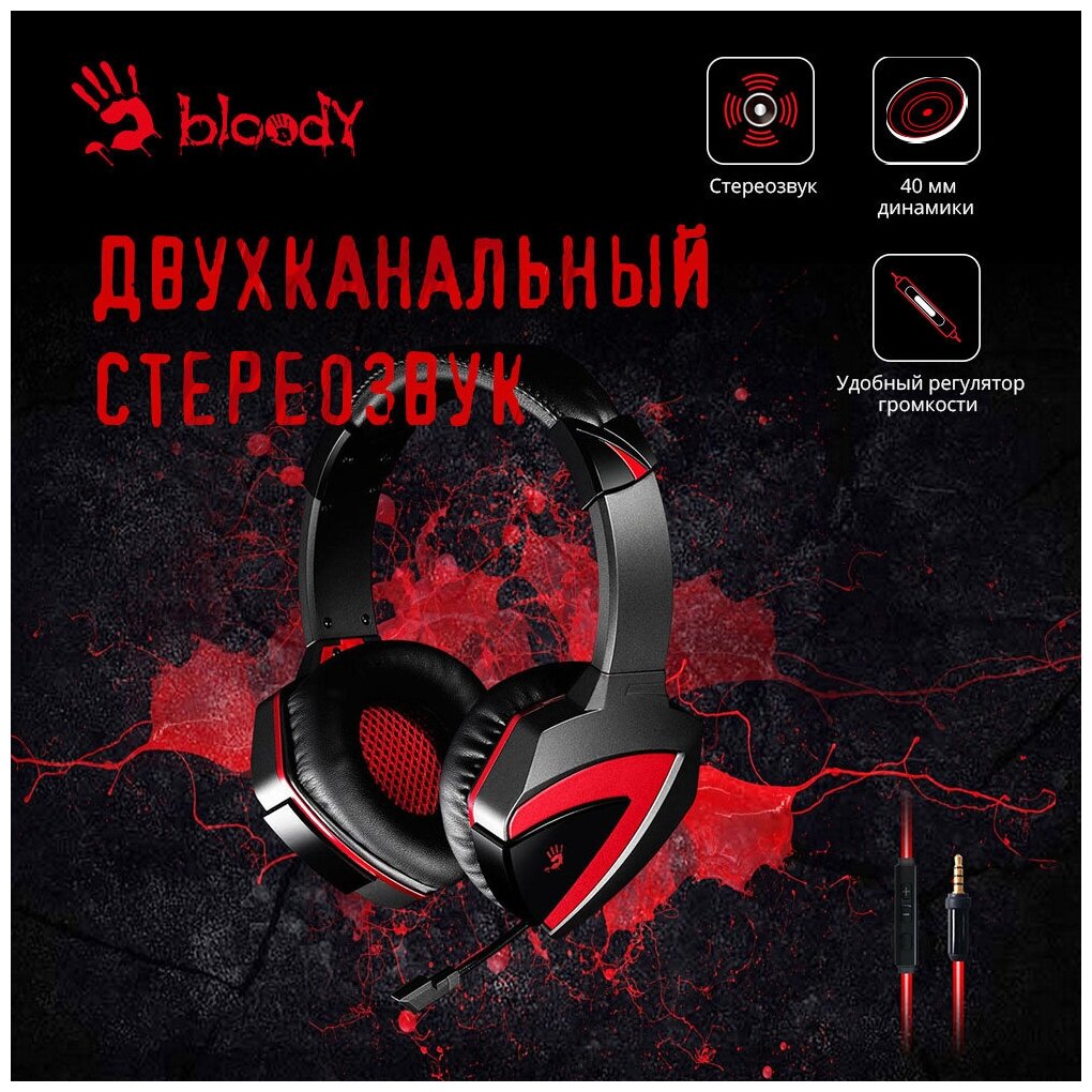 Гарнитура игровая A4TECH Bloody G500, для компьютера, мониторные, проводные, черный / красный [a4tech g500]