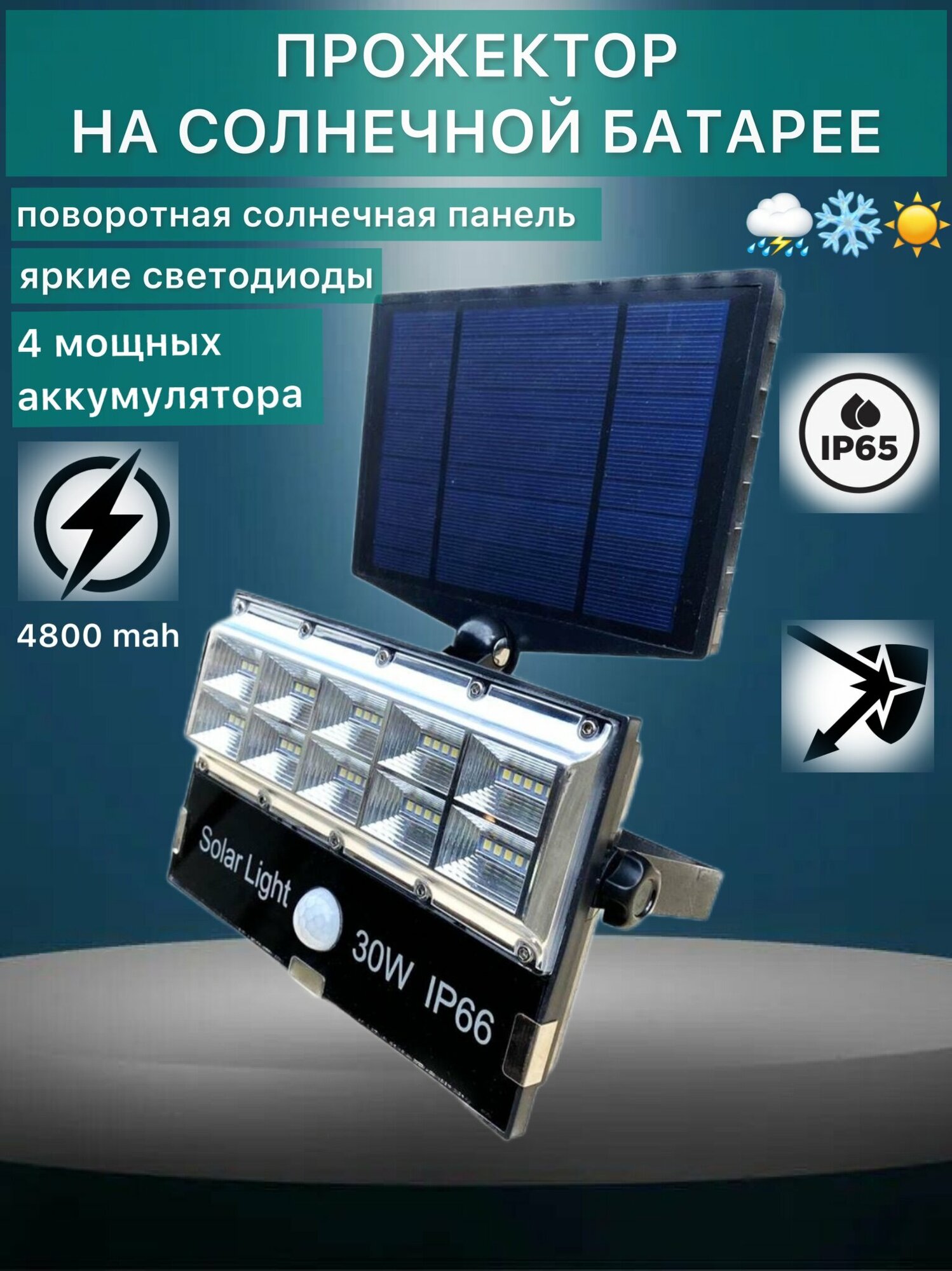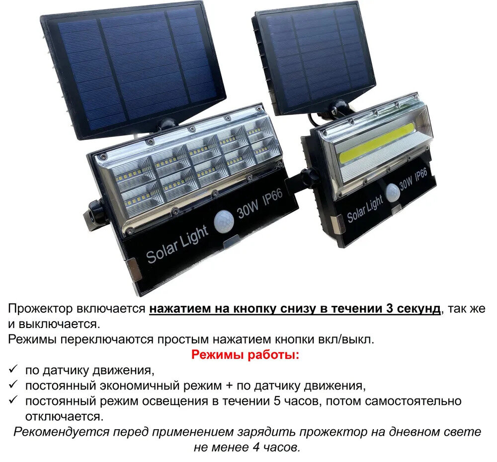 Прожектор светодиодный уличный SL Operated 30W с 3 режимами, датчиком движения на солнечной батарее информация: