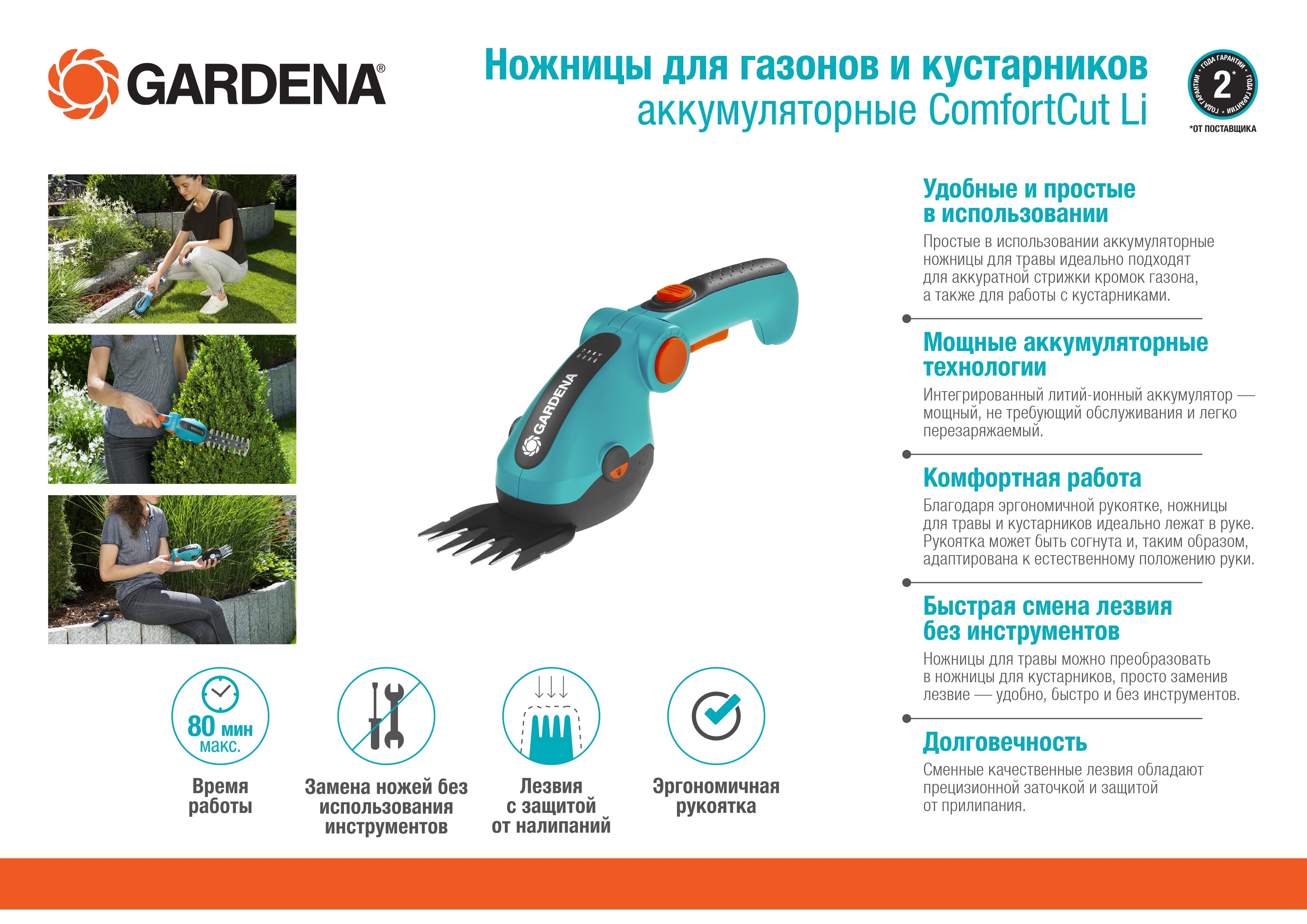 Ножницы аккумуляторные Gardena ComfortCut Li 09857-20.000.00 информация: