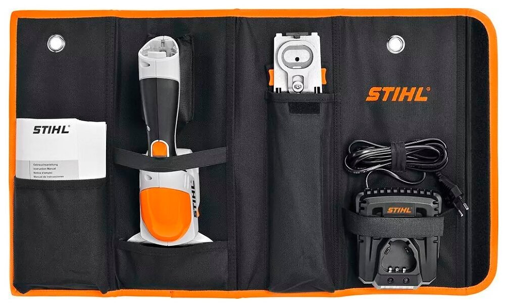 | Комплектация | ножницы-кусторез, аккумулятор системы AS 2, зарядное устройство AL 1, нож для кустарника с длиной лезвия 20 см и защитным кожухом, нож для травы с шириной лезвия 12 см и защитным кожухом, сумка для транспортировки |