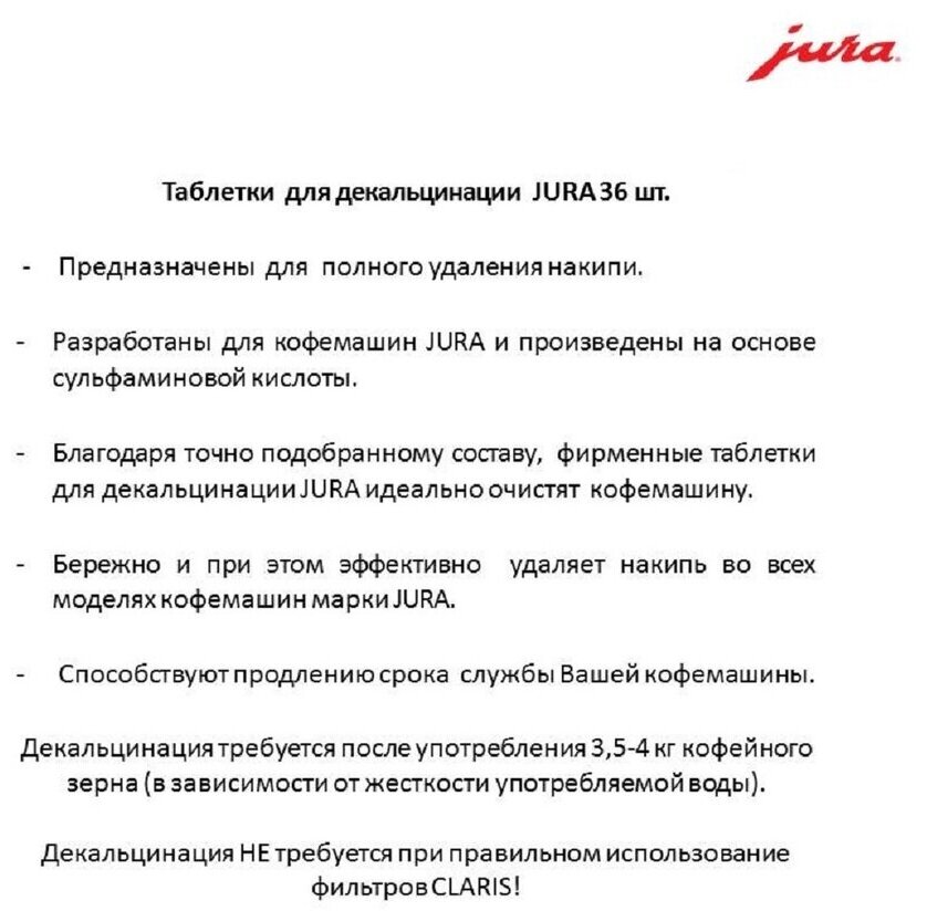 Таблетки Jura для декальцинации 36 шт. (70751) информация: