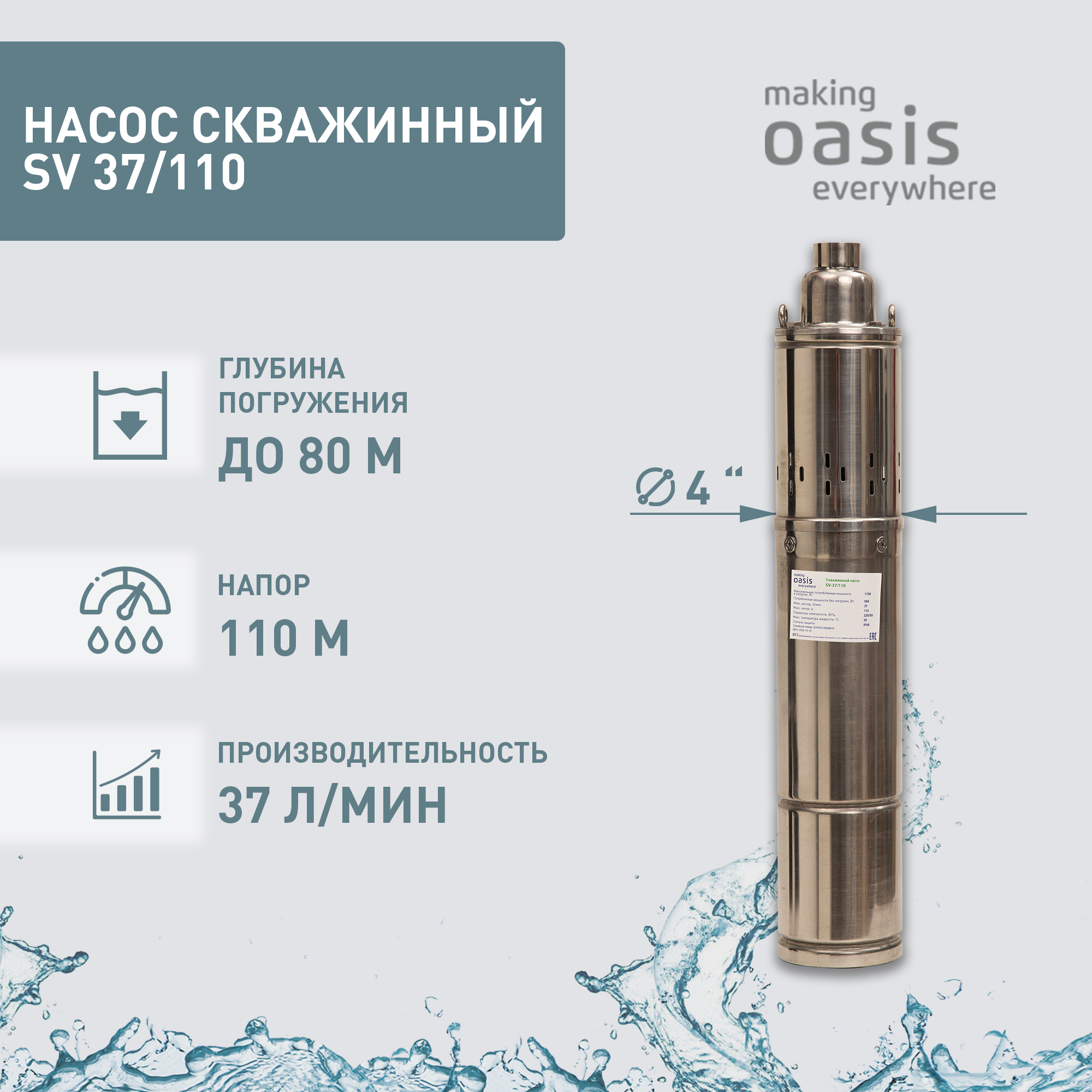 Насос скважинный OASIS (37л/мин, 80 м, SVI 37/110)