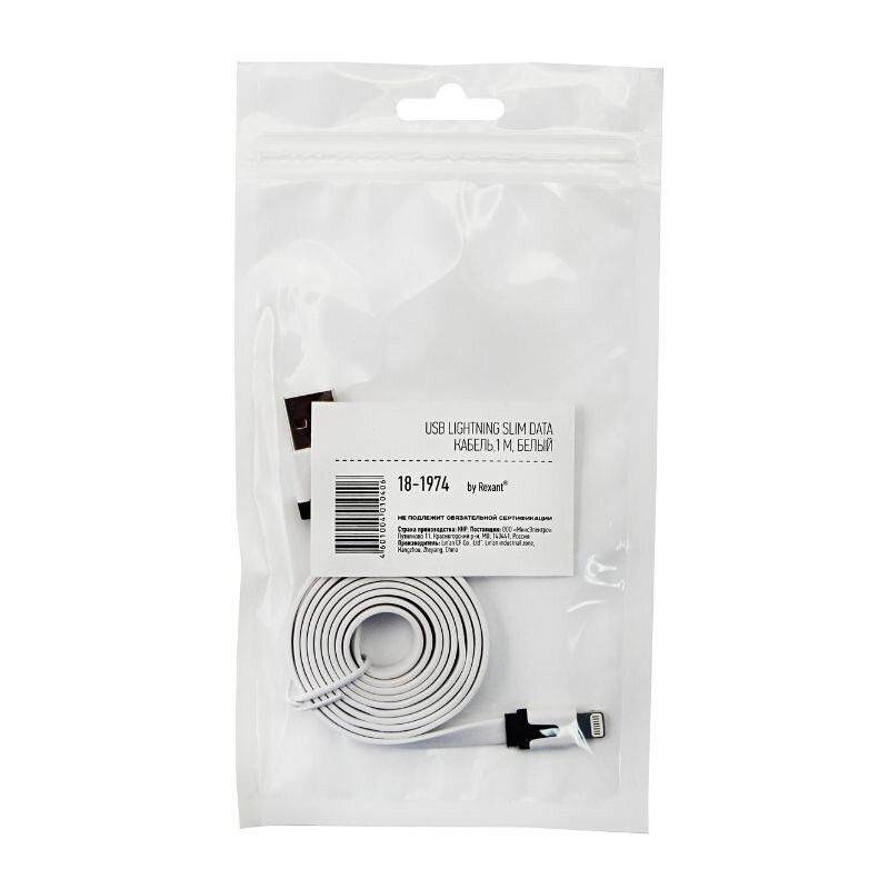 Плоский USB кабель для iPhone с разъемом Lightning 1 м, белый информация: