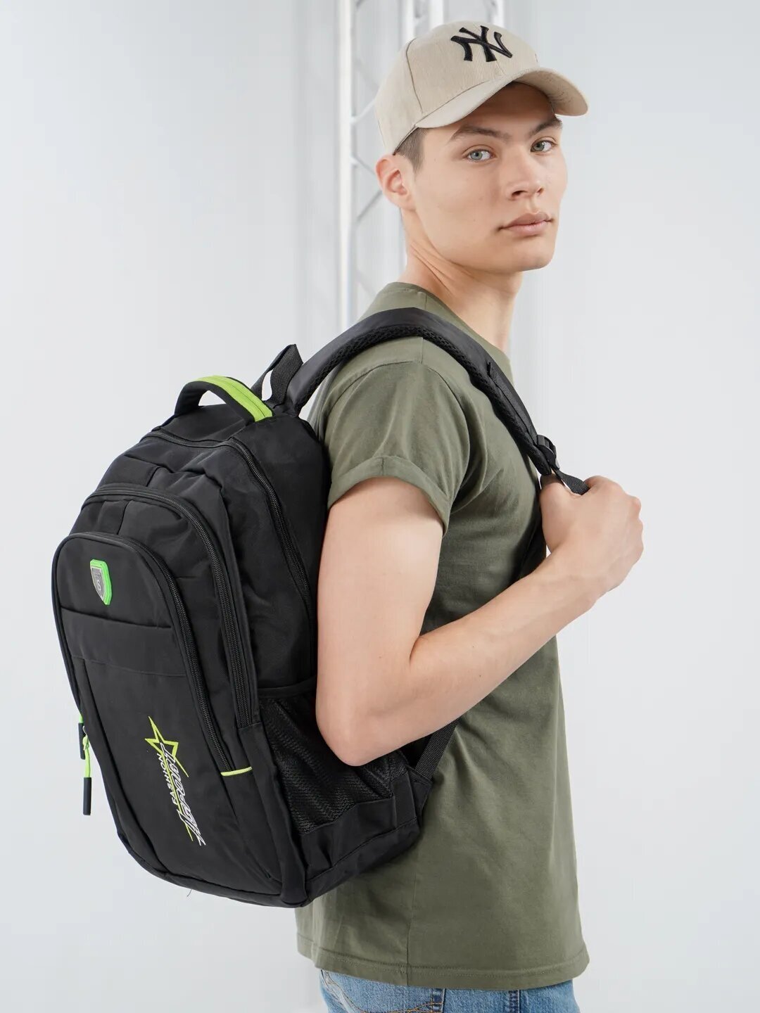 Рюкзак мужской спортивный городской повседневный PANWORK DAILY SPORT черный/зеленый информация: