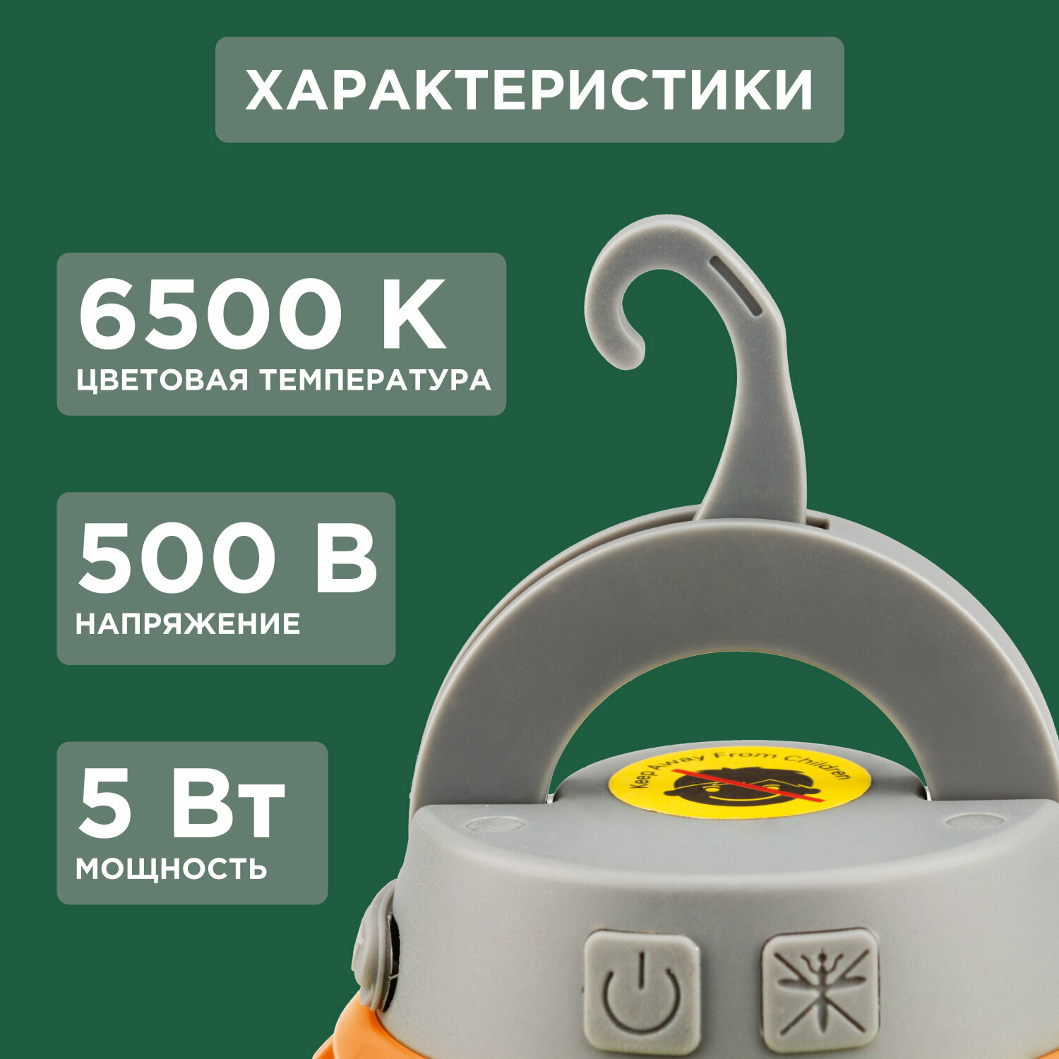 Антимоскитный кемпинговый USB фонарь туристический с тремя режимами яркости и мощным аккумулятором, лампа от комаров, фумигатор информация: