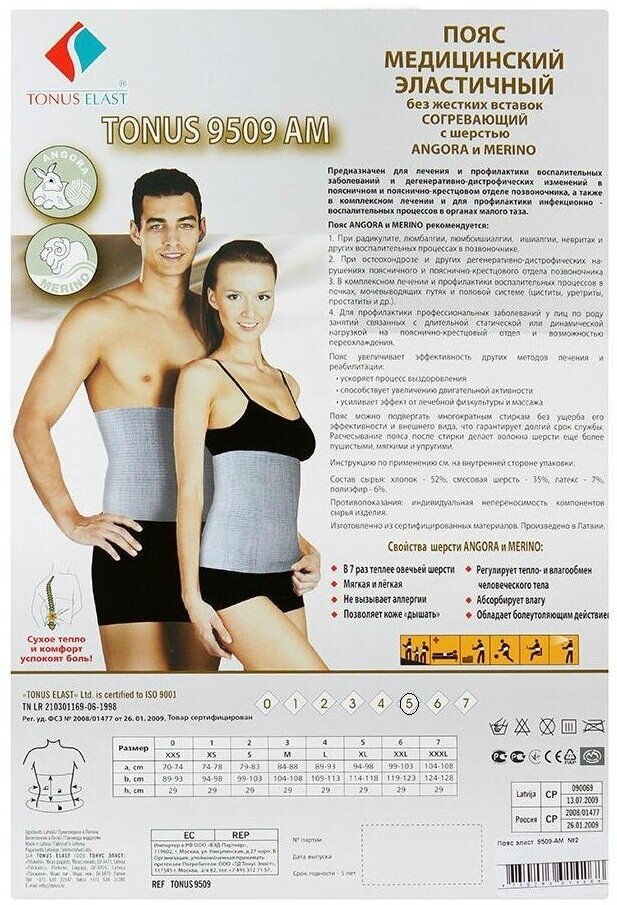 10 цен на Пояс медицинский эластичный.с шерстью №5 TONUS м.9509-АМ