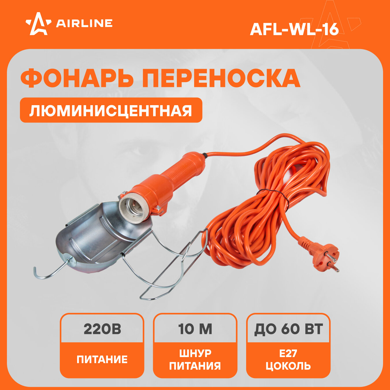 Фонарь переноска 220В, провод 10 м AFL-WL-16 AIRLINE информация: